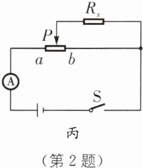 (5)若实验中电压表损坏,利用其他的原有器材也能测出未知电阻$R_{x}$的阻值,实验电路如图丙所示(滑动变阻器最大阻值为$R_{0}$,电源电压未知且不变),请将下列相关实验步骤补充完整: