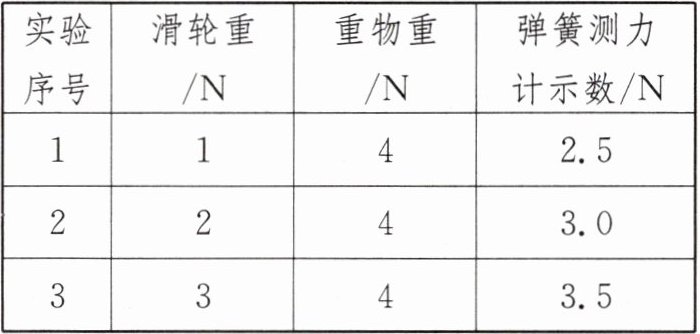 |实验序号|滑轮重/N|重物重/N|弹簧测力计示数/N|