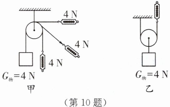 (2)他们研究动滑轮特点时,用不同的动滑轮匀速缓慢竖直提升4N的重物,如图乙所示.记录的数据如表所示.