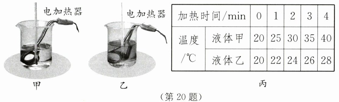 (2)选用规格相同的两个电加热器分别给甲和乙两种液体同时加热,这样做的目的是通过______(填“加热的时间”或“升高的温度”)来反映吸收热量的多少。