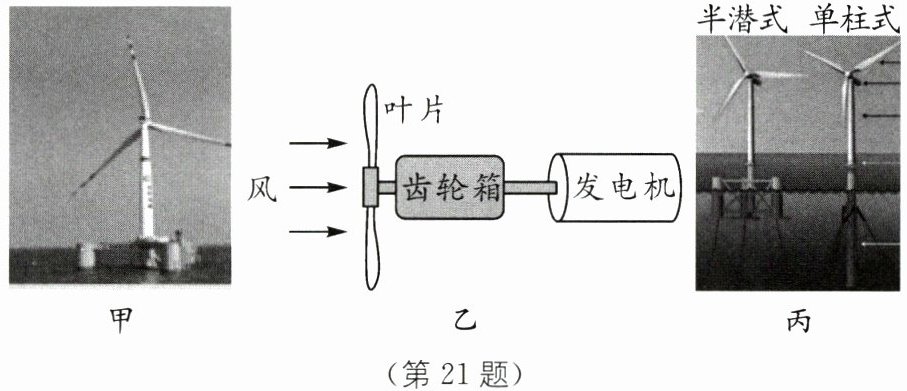 (3)海浮式风电平台基础设计方式除半潜式外还有单柱式(图丙)。两种方式相比较,你认为“半潜式”的一个明显优点是______。