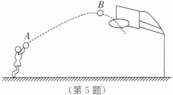 5 如图所示是根据相机拍摄的照片按比例描绘的初三学生小明投篮的图片,已知篮球重6 N.则篮球从 A 处离手后在空中运动至 B 处的过程中,克服重力做功约为( ).