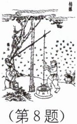 8 传统文化 桔槔打水 桔槔是一种原始的汲水工具,如图所示,横杆末端悬挂一个重物,前端悬挂水桶.水桶中有 15 L 的水,由图可以看出,桔槔本质上是一种 ______(填简单机械名称),在向上打水的过程中,桶升高了2 m,桔槔对水做的功是 ______J.使用同样的水桶一次打取更多的水时,为了更省力,不改变末端重物位置的情况下,其质量应适当 ______(填“变大”“不变”或“变小”).(g 取10 N/kg)
