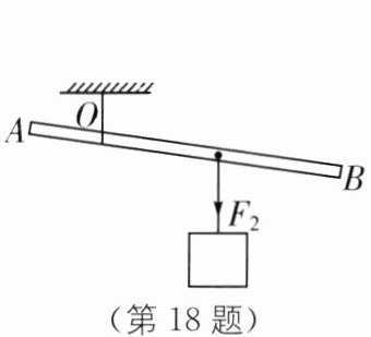 18.(5分)为使轻质杠杆AB在如图所示位置静止,请你在杠杆上画出所施加最小动力$F_{1}$的示意图,并作出阻力$F_{2}$的力臂.