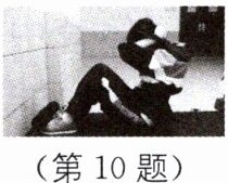 10.3600 60 [解析]该同学的上半身的质量$m=60\%×50\ \text{kg}=30\ \text{kg}$,她上半身的重力$G=mg=30\ \text{kg}×10\ \text{N/kg}=300\ \text{N}$,做一次仰卧起坐克服重力做的功$W=Gh=300\ \text{N}×0.3\ \text{m}=90\ \text{J}$,做了40个仰卧起坐克服重力做的功$W_{\text{总}}=40×90\ \text{J}=3600\ \text{J}$,做功的功率$P=\frac{W_{\text{总}}}{t}=\frac{3600\ \text{J}}{60\ \text{s}}=60\ \text{W}$.