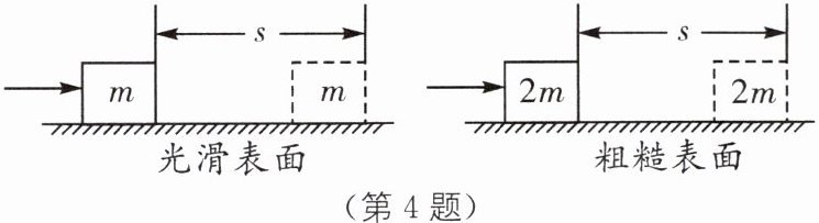 4.C [解析]本题考查功和功率公式的应用.由题意可知,用同样大小的力使物体沿力的方向移动了相同的距离,根据$W=Fs$可以判断出$W_1=W_2$,且两次所用时间相同,根据$P=\frac{W}{t}$可知,前后两次的功率相等,即$P_1=P_2$,故C正确,A、B、D错误.