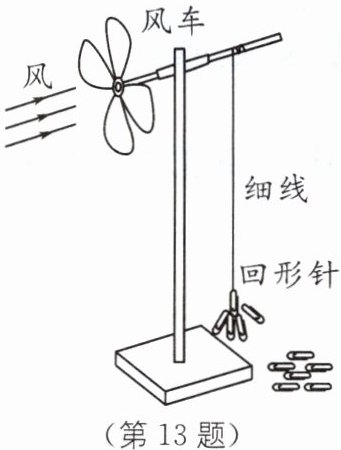 13 中考新考法 生活实践 风车是利用风力做功的装置.小明制作了一架小风车,他想粗略测定风车在一定风速下做功的功率,实验装置如图所示.