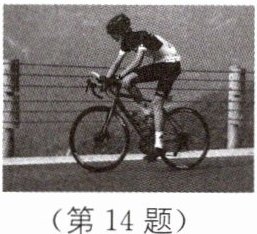 14 质量为 70 kg 的骑行者,骑着质量为 5 kg 的自行车沿着平直的水平路面,以 5 m/s 的速度匀速行驶了5 min,骑行过程中受到的阻力为人和车总重力的 0.02,g 取 10 N/kg,求: