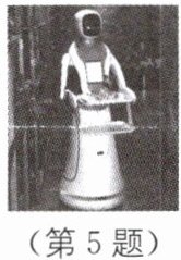 5 新情境 智能送餐机器人的功率计算 第 19 届亚运会在杭州市隆重举行,本届亚运会各种自动化科技应用悉数亮相,机器人技术成亮点.如图所示是一款智能送餐机器人,重力是 300 N,如果机器人在水平路面上以 0.4 m/s 的速度沿直线匀速运动 10 m,它所受到的阻力为 100 N.则机器人的重力做功______J.牵引力对机器人做功______J,功率为______W.