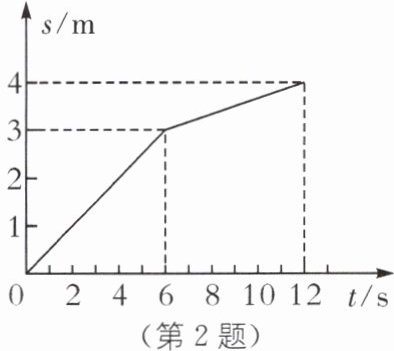 3:1 [解析]由图可知,0~6s内和6~12s内物体以不同的速度做匀速直线运动,在0~6s内通过的路程是3m,速度v₁=s₁/t₁=3m/6s=0.5m/s,在6~12s内通过的路程为1m,速度v₂=s₂/t₂=1m/6s=1/6m/s,不考虑空气的阻力和钢索受到的重力,钢索的拉力与货物的重力平衡,大小相等,根据P=W/t=Fs/t=Fv可得,在4s和10s时钢索拉力的功率之比P:P'=Gv₁:Gv₂=v₁:v₂=0.5m/s:1/6m/s=3:1.