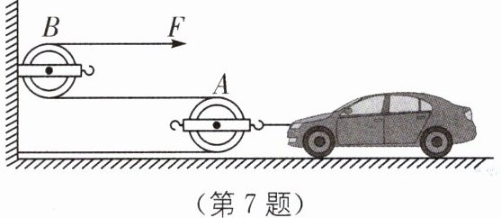 7 如图所示,用滑轮组帮助汽车脱困时,滑轮A的作用是 ;汽车被匀速拉动时,作用在绳子上的拉力F为1000 N,滑轮组的机械效率为80%,则汽车受到的摩擦力为 N.