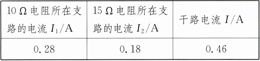 |10Ω电阻所在支路的电流$I_{1}/A$|15Ω电阻所在支路的电流$I_{2}/A$|干路电流$I/A$|