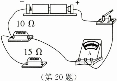 20. (14分) 中考新考法结论开放性问题 某同学在“探究并联电路中干路电流与各支路电流的关系”的实验中,所用的实验器材有两节干电池串联组成的电池组,电流表(量程分别为0~0.6A、0~3A)和开关各一个,定值电阻三个(阻值分别为5Ω、10Ω、15Ω),导线若干.