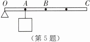 5 如图所示,一根均匀的细木棒 OC,OC= 4OA,B 是 OC 的中点,在 C 点施力将挂在 A 点的重为 180 N 的物体匀速提升10 cm,木棒的机械效率为 90%,则提升该物体做的有用功是______J,木棒的重为______N.(不计摩擦)