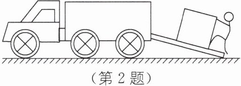 2 如图所示,往车上装重物时,常常用长木板搭个斜面,把重物沿斜面推上去.假设工人用3 m长的斜面,把 900 N 的重物提高1 m,若实际用力为 500 N,斜面的机械效率为______,重物受到的摩擦力为______N.