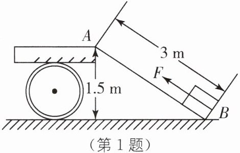1 一辆卡车的车厢底板距地面高度为 1.5 m,小军把 3 m 长的钢板 AB 搭在车厢底板上,构成一个如图所示的斜面,他沿着斜面方向用500 N 的力,把一个木箱从 B 处推到 A 处,已知木箱重为 800 N,推木箱的时间是 50 s,在这一过程中斜面的机械效率是______.