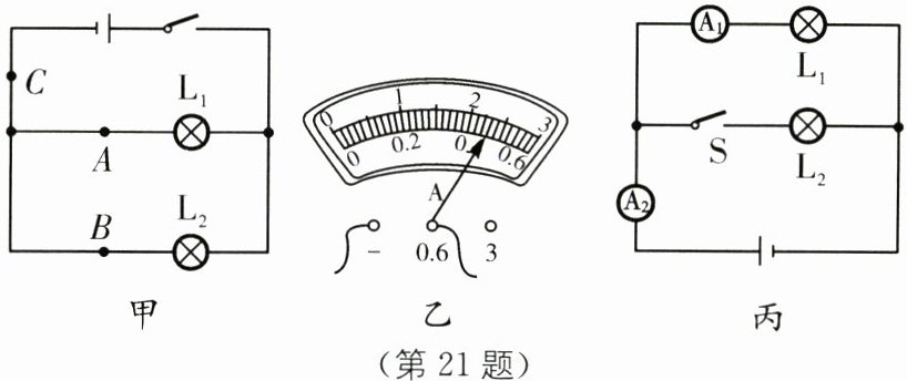 (2)小明将电流表连接在C处,闭合开关后,发现其指针位置如图乙所示,则通过该处的电流为______A.