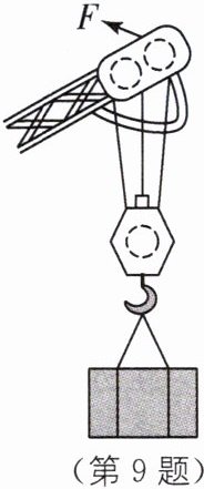 9 (2024·扬州邗江区一模)如图所示是安装在某种塔式起重机吊臂一侧的滑轮组,某次匀速起吊 6000 N的物体时,上升5 m,用时15 s,滑轮组的机械效率是 80%.求: