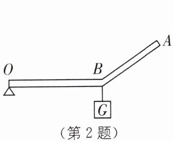 2 如图所示,OBA为一根杠杆,O为支点,在杠杆的B处用细线悬挂重为G的物体,若不计杠杆自重,设保持OB段在水平位置平衡时,在A端需施加的最小外力为$F_{1}$,若保持AB段在水平位置平衡时,在A端需施加的最小外力为$F_{2}$,则( ).