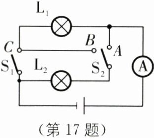 17. (9分)(2023·宿迁沭阳县模拟)如图所示电路中,电灯$L_1$的阻值为10Ω;当$S_1$接C时$,S_2$接B时,电流表的读数是0.3A。问: