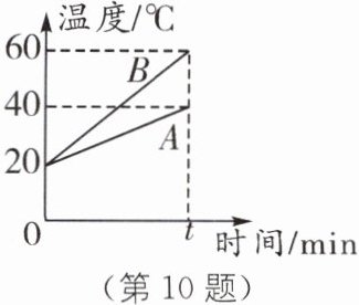 10 用相同的电加热器分别对质量相等的A和B两种液体加热(不计热量损失),如图所示是A和B的温度随加热时间变化的图像,下列说法正确的是( ).