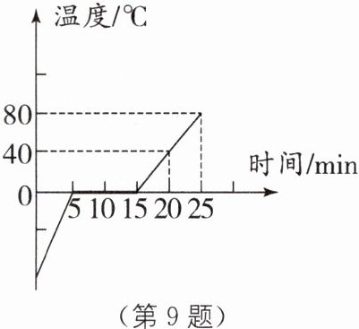 9 如图所示是“探究晶体熔化时温度随加热时间变化”的图像(相同时间吸收的热量相同).分析图像可知: