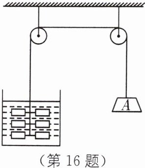 16 中考新考法 模型结构 为了定量研究机械能和内能之间的转化是否遵循能量守恒定律,小明利用如图所示装置进行实验.重物 A 在下落1m 的过程中通过滑轮、轻绳带动容器中的金属叶片与水摩擦生热,使容器中 0.5 kg的水温度升高了0.2°C,则水的内能增加______J;经过多次实验,发现重物 A 的机械能减小量总是稍大于水的内能增加量,为了使此装置的机械能更多的转化为水的内能,你建议小明采取的措施是______.[重物 A 的质量及每次下落高度保持不变,${c}_{水}= 4.2× {10}^{3}J/(kg{\cdot }^{\circ }C)$]