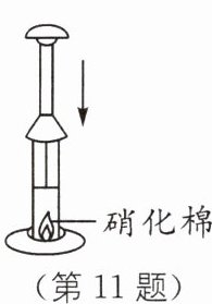 11.做功 压缩 [解析]本题考查对四冲程内燃机工作过程的了解.用力将活塞压下的过程,活塞压缩空气做功将机械能转化为空气的内能,这是通过做功的方式改变了空气的内能;四冲程汽油机的压缩冲程中发生的能量转化也是将机械能转化为内能.