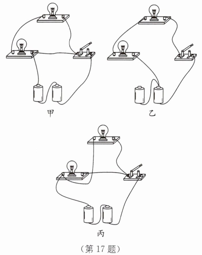 图甲:开关闭合时会造成电源短路 图乙:有一节干电池没接入电路 图丙:电路导线有交叉