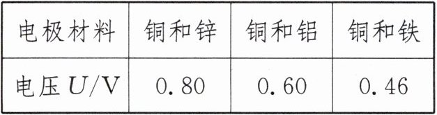 (2)插入深度 两电极间距离 水果电池的电压与电极的材料有关