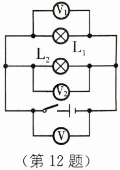 12 (2024·陕西榆林定边县期末)如图所示,灯泡$ L_2 $比$ L_1 $亮,电压表 V 示数为 4.5 V,下列说法正确的是( ).