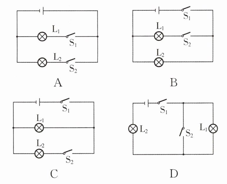1 实验课上,小明连接了如图所示的实物电路,如图所示的四个电路图中,与实物电路对应的电路是( ).
