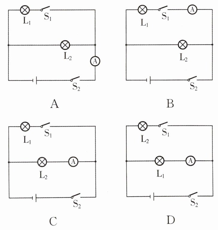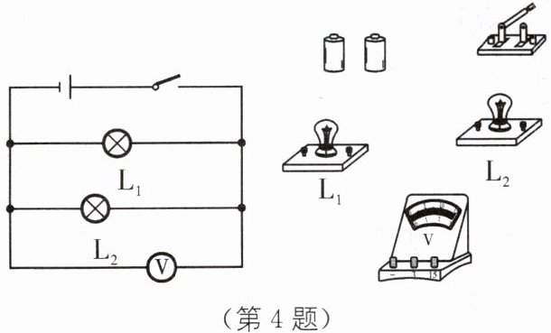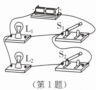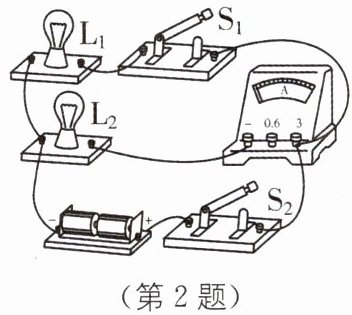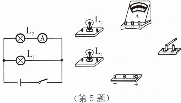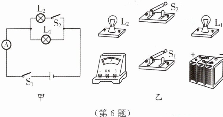 6 用笔画线代替导线完成图乙中电路的实物连接(已知流过$L_1$和$L_2$的电流分别为0.5 A 和0.8 A),要求:导线不能交叉.
