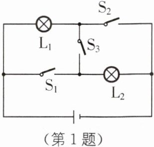 D [解析]要使灯泡L₁和L₂组成串联电路,应将灯L₁和L₂首尾顺次连接到电源两端,则由图可知闭合S₃,断开S₁、S₂,灯泡L₁和L₂组成串联电路,故D符合题意;若闭合开关S₁、S₂和S₃,电流不经过用电器直接从电源的正极流入电源负极,从而形成电源短路,故A不符合题意;若只闭合开关S₁和S₂,灯泡L₁和L₂组成并联电路,故B不符合题意;若只闭合开关S₂和S₃,灯L₂被短路,电流不经过灯L₂,只有灯L₁连入电路,故C不符合题意.
