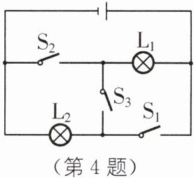 4 如图所示电路中,只闭合$S_1、$$S_2$时,灯$L_1、$$L_2$是 的;只闭合$S_3$时,灯$L_1、$$L_2$是 的.(填“串联”或“并联”)
