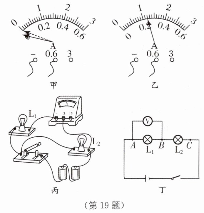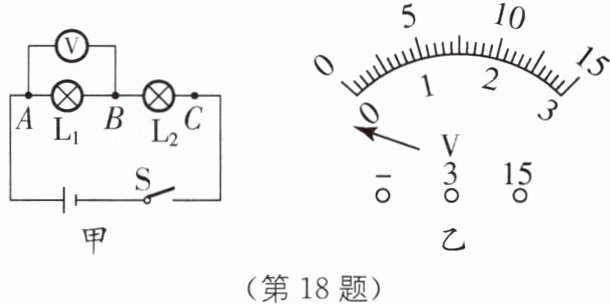 (2)小明根据图甲所示连接好电路,此时电压表测量 (填$“L_1”$或$“L_2”)$两端的电压;闭合开关后,发现两灯不亮,电压表示数为零,若电路只有某一个灯发生了故障,则故障可能是 .