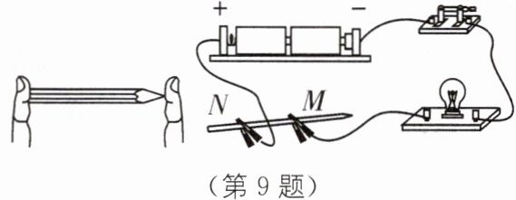 (2)将夹子M向右移动,小灯泡变暗,铅笔芯接入电路的电阻变______.