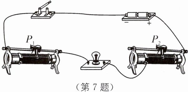 8 如图所示,滑动变阻器的滑片P向左移动,其接入电路的阻值将增大,则滑动变阻器接入电路的接线柱可能是( ).