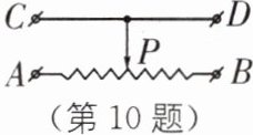 10 滑动变阻器的原理是通过改变连入电路中电阻丝的______来改变电阻,从而改变电路中的______.如图所示是滑动变阻器的结构示意图,要使滑片P向右滑动时电阻变大,应接入的接线柱为______或______,若使滑动变阻器相当于一个定值电阻,应接入接线柱______和______.