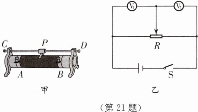 (3)由图乙可知,滑动变阻器全部接入电路,$V_{1}$测滑片左侧部分的电压,$V_{2}$测右侧部分电压,通过两边的电流相等,当两电压表示数相等时,此时滑片位置就是它的中点位置。