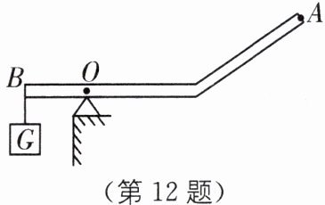 12 如图所示,杠杆 B 点挂一重物 G,要使杠杆在图中位置平衡,请画出此时施加在杠杆 A 点处最小的力$ F_1.$