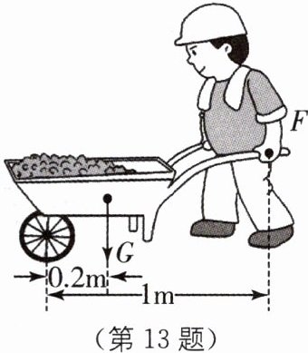 (3)由题图可知,$l_{G}=0.2\,\text{m}$,$l_{F}=1\,\text{m}$,由杠杆的平衡条件可得$Gl_{G}=Fl_{F}$,则人手对车把手竖直向上的力:$F=\frac {l_{G}}{l_{F}}G=\frac {0.2\,\text{m}}{1\,\text{m}}×800\,\text{N}=160\,\text{N}.$