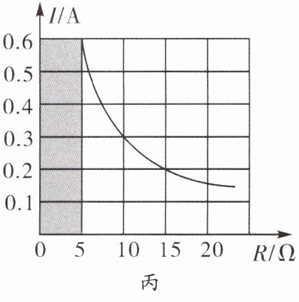 (4)根据画出I - R图像(如题图丙)知,图中阴影面积为长方形,其面积等于IR,由欧姆定律得$U = IR$,阴影面积表示的物理量是电阻两端的电压,其数值为$U = IR = 0.6A×5\Omega = 3V$.