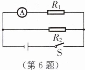 6 如图所示,$R_{1}= 30\ \Omega$,$R_{2}= 10\ \Omega$,闭合开关后,电流表的示数为0.2 A.求: