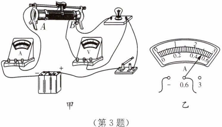 3 如图所示,是用电压表和电流表测正常工作电压4 V的小灯泡正常发光时电阻的实验电路.这个电路连接存在的问题是______.将电路连接正确后,闭合开关,将滑动变阻器的滑片移动到如图所示的位置时,电压表示数为3 V,这时应将滑动变阻器的滑片向______(填“左”或“右”)适当移动.当小灯泡正常发光时,电流表示数如图乙所示,则小灯泡正常发光时的电阻是______Ω.