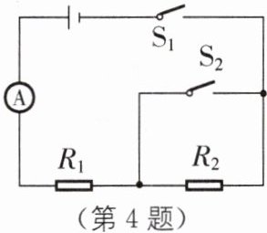 4 如图所示,电源电压保持不变,定值电阻$R_{1}$、$R_{2}$的阻值分别为10Ω、30Ω.当开关$S_{1}$、$S_{2}$均闭合时,电流表示数为1 A.求: