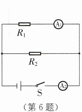 6 如图所示,电流表$A_{1}$的示数为0.3 A,电阻$R_{1}= 10\Omega $、$R_{2}= 20\Omega $,则电流表$A_{2}$的示数为______A.