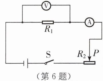 6 小明用如图所示的电路“探究电流与电压的关系”.所用电源电压为4.5 V.闭合开关S时,发现电压表无示数,但电流表有示数,电路故障可能是电阻$R_1______($填“断路”或“短路”).排除故障后,他移动滑动变阻器的滑片,发现当电压表示数为1.2 V时,电流表示数为0.30 A;继续移动滑片,使电压表示数从1.2 V增加到2.4 V,那么该过程中滑动变阻器$R_2$连入电路的阻值减小了______Ω.