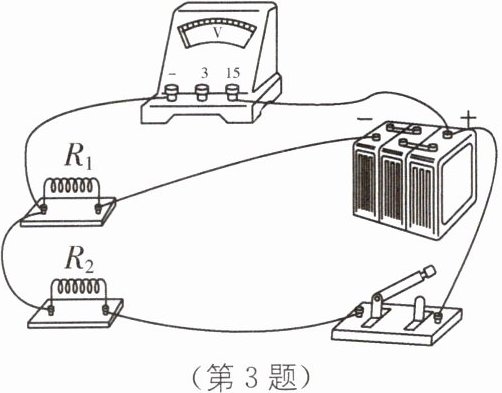 R₂断路(或R₁短路) R₁断路 [解析]由图可知,该电路为串联电路,电压表测量R₂两端的电压。连接完成后他发现,电压表有示数,此时电压表与电阻R₁串联接在电源两极上,此时电压表示数几乎等于电源电压;闭合开关后发现电压表示数不变,这说明闭合开关前后对电路无影响,则电路故障为R₂断路或R₁短路;闭合开关前发现电压表没有示数,这说明电压表与电源之间是断开的,闭合开关后电压表也无示数,电压表与电源之间仍然是断开的,所以故障可能是R₁断路。