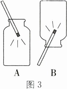 (3)现有两个装满氧气的集气瓶,按图3所示,用带有火星的木条分别以A、B两种方式迅速插入,观察到木条复燃,且在A中燃烧比在B中燃烧更旺。从以上实验现象可知氧气的性质有______、______。